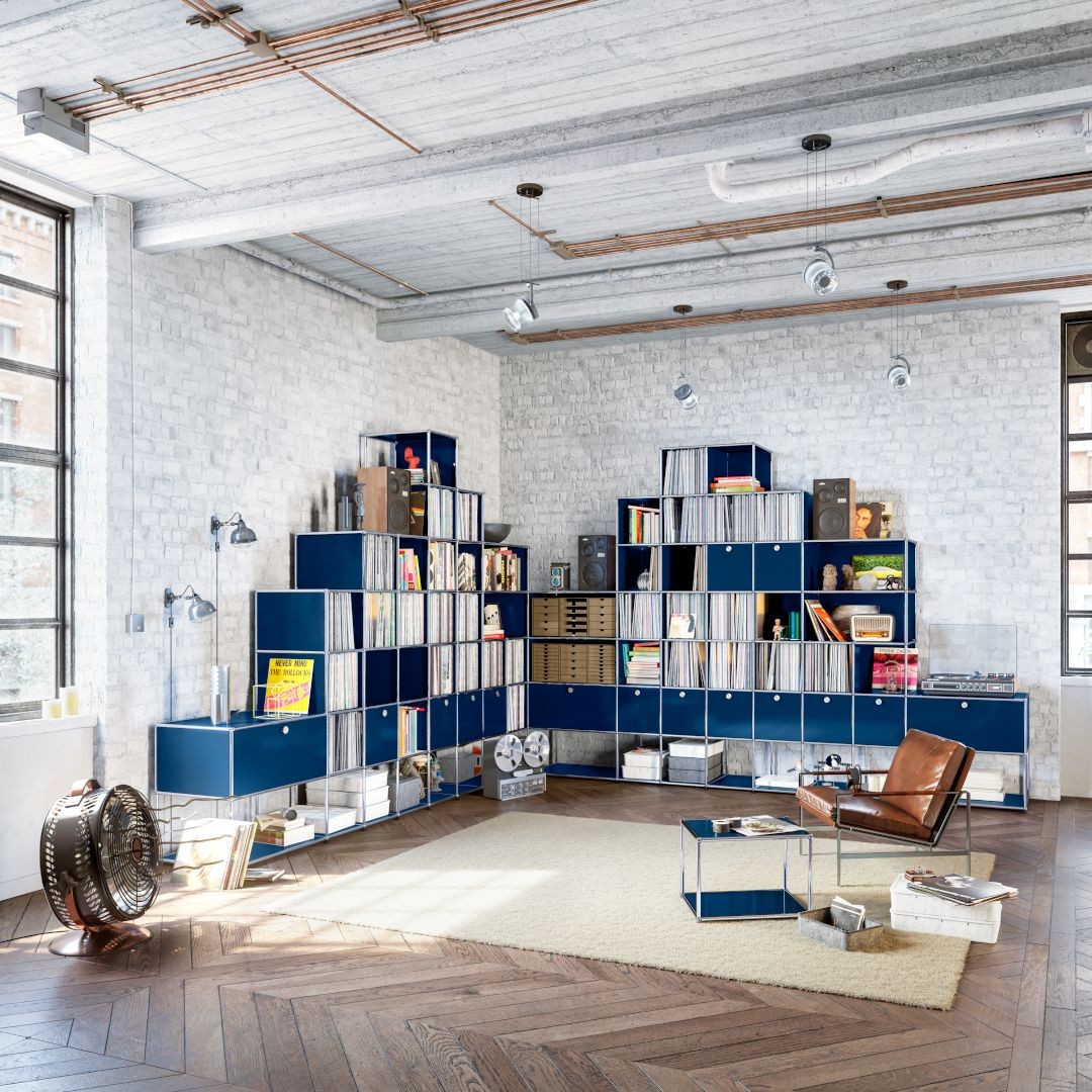 Unsere Rubrik Themenwelt visualisiert deshalb USM Haller Regale für verschiedene Anwendungen: Kinderzimmer, Medienschrank und vieles mehr.