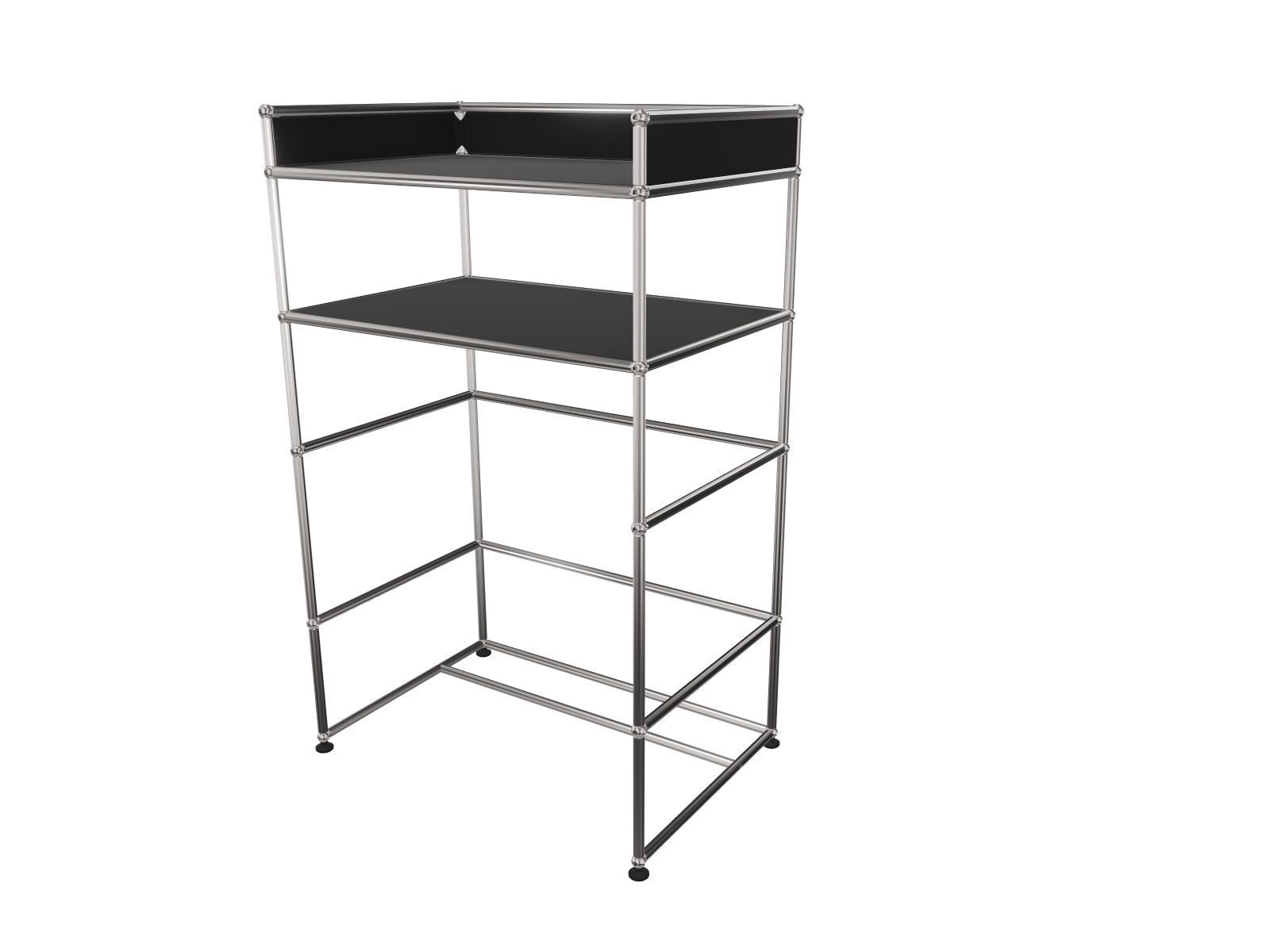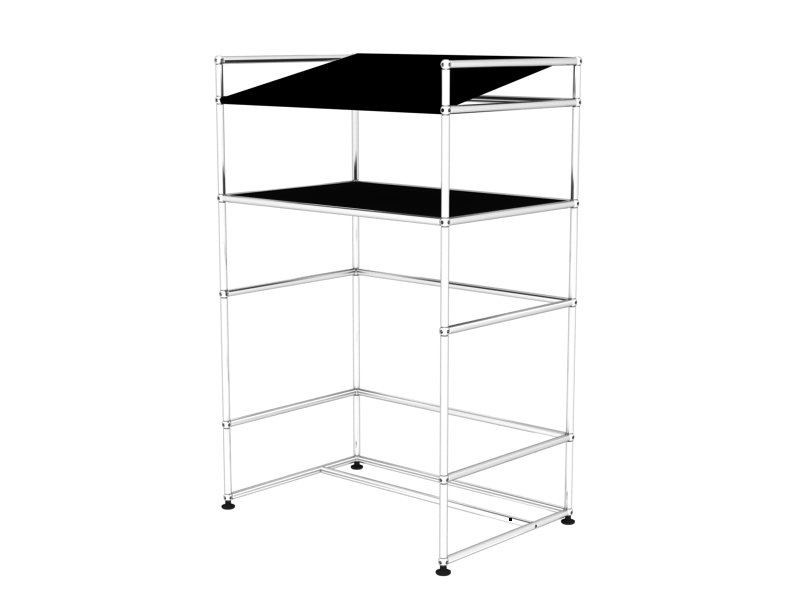 Das USM Haller Möbelsystem ist mit seinen unzähligen Variationsmöglichkeiten die ideale Basis zur Konstruktion eines individuellen Stehpultes oder Rednerpultes. Du kannst dabei sowohl eine offene als auch die geschlossene Variante realisieren, auch eine mobile Version auf Rollen ist möglich.