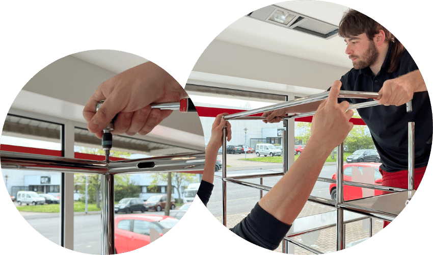 Sie möchten Ihr Regal umbauen oder erweitern? Kein Problem! Das Regal ist zu groß, um es an den gewünschten Ort zu tragen? Wir liefern in Teilen und montieren vor Ort! Sie planen einen Umzug und brauchen Profis, die das USM Haller System demontieren und wieder neu aufbauen? Unsere Mitarbeiter machen genau das nahezu täglich.