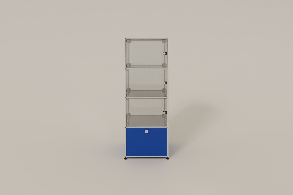 USM Haller Glasvitrine mit 3 Glastüren und 1 Klapptüre