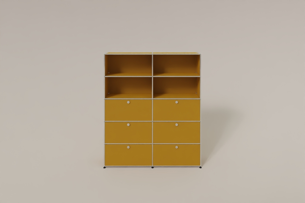 Das USM-Haller Regal mit 6 Klapptüren und 4 offenen Fächer